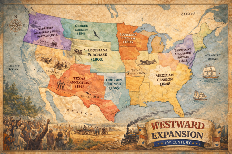 Millions of settlers moved westward in search of land, opportunity, and independence. This expansion created new territories, states, and communities, but it also generated intense conflict. Native American nations were forcibly displaced through warfare, broken treaties, and federal policies such as the Indian Removal Act.