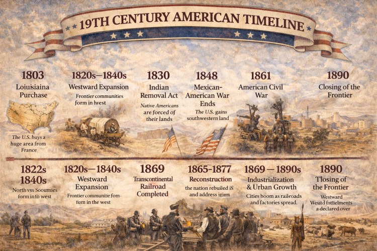 The 19th century was defined by westward expansion, industrialization, the Civil War, and the United States’ transformation into a continental power.