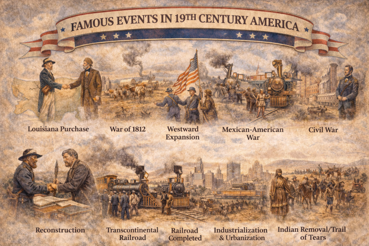 From frontier settlements and westward migration to railroads, factories, and growing cities, the century reshaped American society, politics, and culture in lasting ways. This page provides a comprehensive overview of 19th century America, serving as a gateway to its most important themes, events, and transformations.