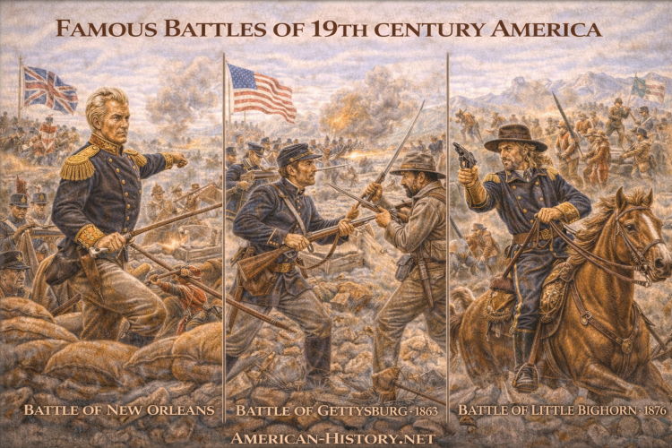 During the 19th century, the United States witnessed a number of major conflicts. These included wars with Britain, Native Americans, Spain, Mexico as well as a Civil War that shook the nation. A number of iconic battles were fought as a part of these conflicts and became the highlights of 19th-century American history. Following are some of the most famous battles from the period.