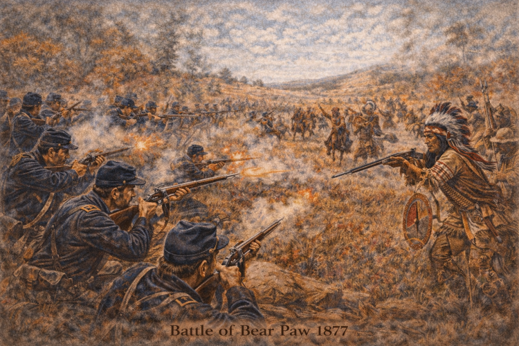 The Battle of Bear Paw took place from September 30, 1877 to October 5, 1877. It took place in the Blaine County in Montana, only 40 miles from the Canadian border.
