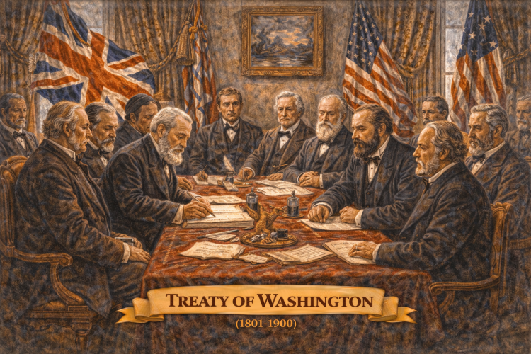 The Treaty of Washington was a treaty signed by United States of America and the United Kingdom. It was meant to resolve a number of conflicts between the two nations. One of these was the death of many British civilians during the American Civil War even though Britain had remained neutral during the war.