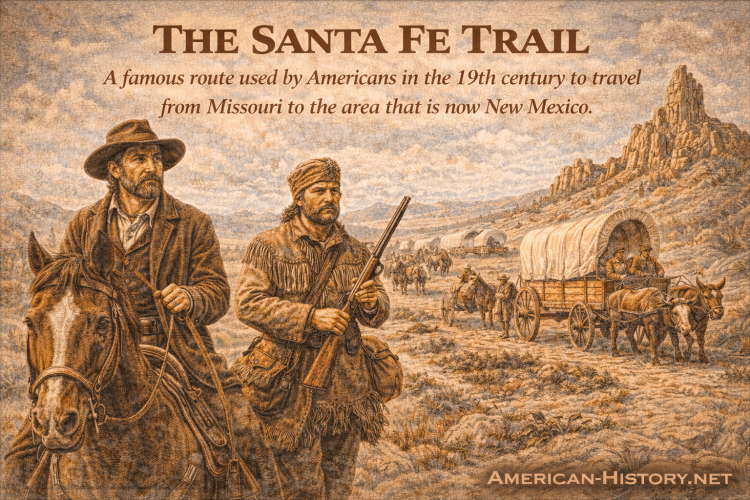 The Santa Fe Trail was a famous route that was used by Americans in the 19th century to travel from Missouri to the area of Santa Fe which is today known as New Mexico. Until 1821, Mexico and the southwestern parts of today’s USA were under Spanish control. In 1821, Mexico gained independence from Spain and allowed American settlers to come to the area of New Mexico as well as Texas.