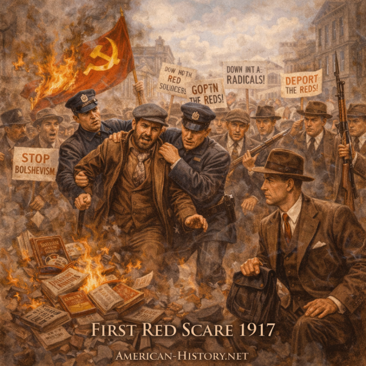 The First Red Scare was a period in American history that stretched from 1917 to 1921. During this period, the American government launched large-scale measures against Bolshevism and anarchism. The government believed that the Bolshevists and anarchists wanted to topple law and order in USA. This was clearly not true but since the Bolshevists had recently succeeded in Russia, the government was overly paranoid.