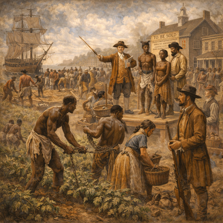 Millions of Africans were forcibly transported to the Americas and enslaved. Their labor powered colonial economies and built enormous wealth while denying basic human rights.