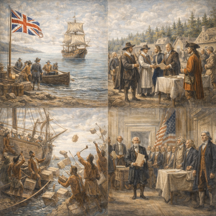 - 1765–1775 – Rising tensions over taxation and British control unite the Thirteen Colonies.