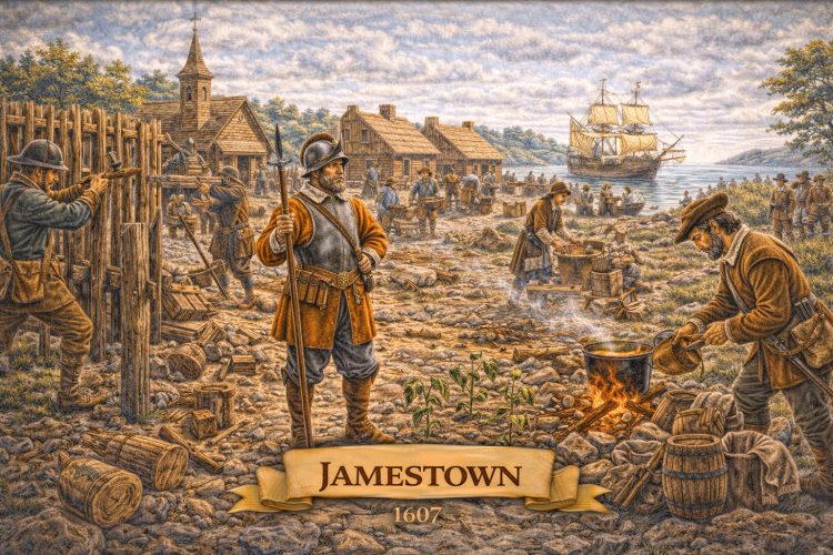 This hub explains why Europeans crossed the Atlantic, what early settlement was like, and how early English colonies began to organize themselves—then links you to the key stories of the era: the Pilgrims and Jamestown.