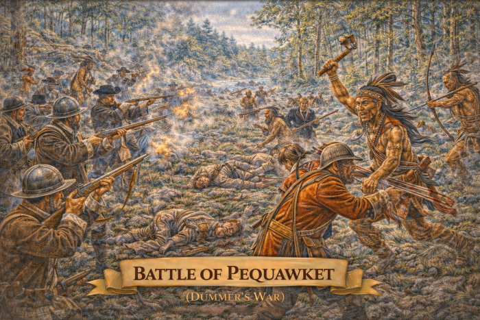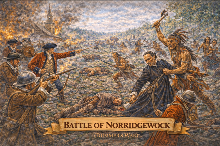 The Battle of Norridgewock was fought as a part of the Dummer’s War during the 18th century. At the time, the British colonists were fighting with the Wabanaki Confederacy who had the support of the French. The battle was a part of this conflict.