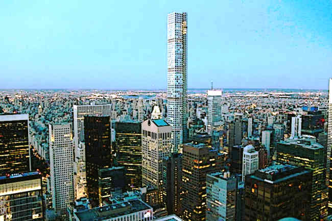 A residential skyscraper in New York City, 432 Park Avenue overlooks the famed Central Park (an urban park in Manhattan, New York City).