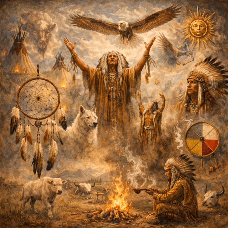 Spirituality was deeply connected to nature, animals, and ancestral spirits. Symbols, rituals, and ceremonies expressed beliefs about balance, strength, and the natural world.
