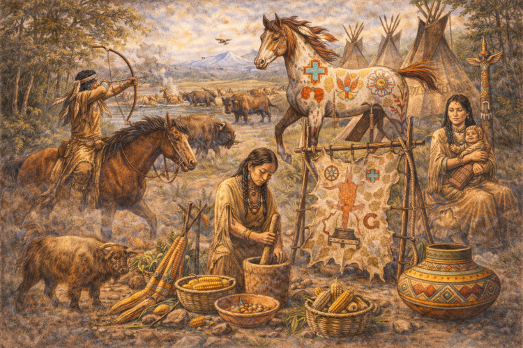 Across forests, plains, deserts, mountains, and coastal regions, Native American tribes developed unique ways of living that reflected their environments. From housing and food to art, beliefs, and social roles, daily life was closely connected to nature, community, and spiritual values.