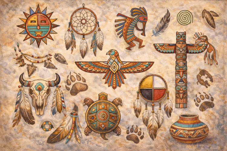 Art played an important role in everyday life. Native Americans expressed creativity through beadwork, pottery, weaving, carvings, and symbolic designs. Many artistic patterns carried spiritual meaning or told stories about ancestry, nature, and beliefs.