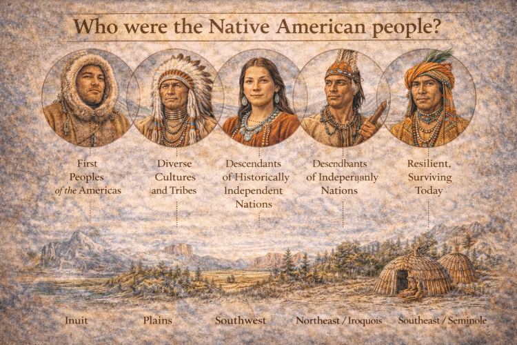 Native Americans are the Indigenous peoples of North America who lived on the continent for thousands of years before European contact. Rather than forming a single culture, Native American societies were extraordinarily diverse, shaped by geography, climate, resources, and deeply rooted traditions.